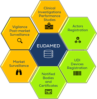 EUDAMED consists of a public website and six interconnected modules.
